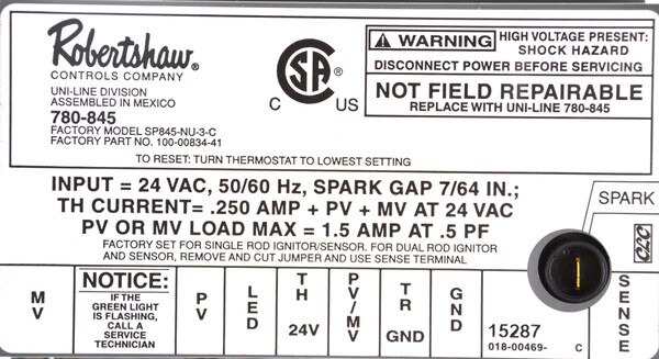 ROBERTSHAW IGNITION CONTROL IGNITION CONTROL SP845 780-845(0)No Reviews yet Part #: 780-845 Brand: ROBERTSHAW $416.63 Quantity discounts available QuantityPrice Quantity -+ Add to Cart Reviews 0 Back Ratings & ReviewsNo reviews availableBe the first to Write a Review