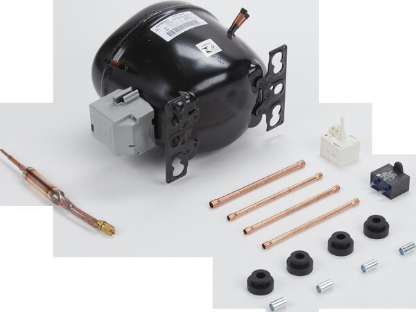Whirlpool Genuine OEM W10309994 Refrigerator Compressor Kit. The compressor is a positive displacement pump that compresses the refrigerant in the sealed system of a refrigerator.