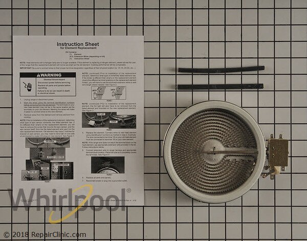 Whirlpool OEM W10823711 Range Radiant Surface Element. This element is 6" in diameter. This element is 1200 watts. The radiant surface element supplies the heat to a cooking area on top of the range.